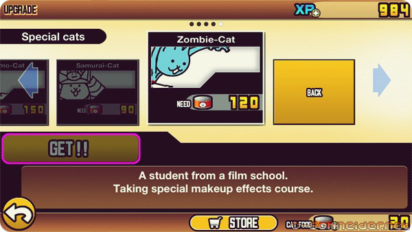 Above is my favourite cat, "Gross Cat". Each level you beat grants you XP to level up your cats, your cat laser and all kinds of things. Unfortunately I soon levelled up and lost him (her?) to his evolution.